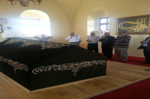 Türbede içeride bir grup var. Onlar çıkınca biz gireceğiz.